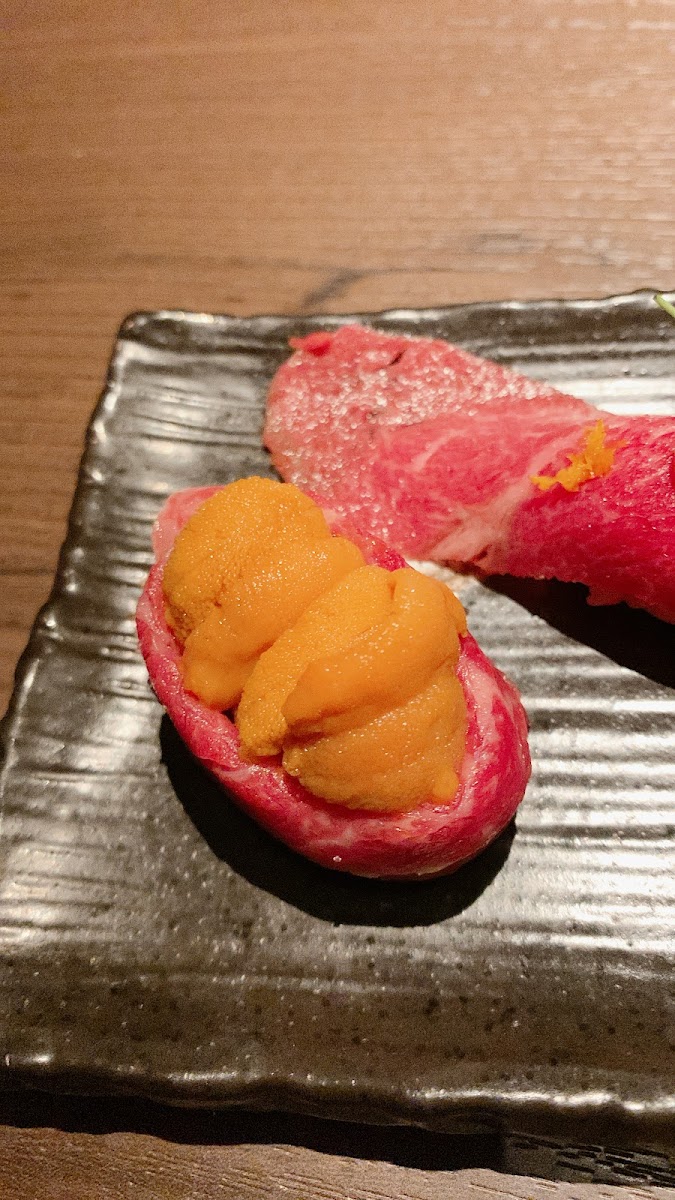 The menu here is an adventure in high-quality Japanese beef. One of the standout selections is the 極上タン カタサンカク クリ イチボ コースより塩焼盛合せ, a carefully curated assortment of premium cuts that practically melt in your mouth when grilled just right. If you’re stopping by during the day, the 牛煮込みランチ is a comforting, hearty choice that’s both satisfying and flavorful, offering a taste of slow-cooked perfection. For something a bit more decadent, the 牛肉の雲丹巻き combines the rich flavor of beef with delicate uni, creating a luxurious bite that lingers pleasantly on the palate.